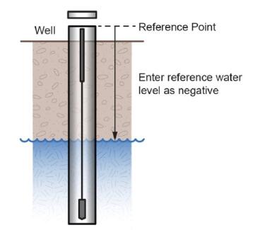 如果水位表面低于參考點,如下所示,輸入HOBOmobile中的參考水位作為負數(shù)。