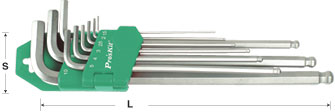 HW-129BL, 長臂球型扳手組(9支組) [六角扳手類]. 1.5,2,2.5,3,4,5,6,8,10mm (公制). 材質(zhì): SAE6150 鉻釩鋼. 特長型. 表面霧鉻處理