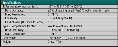 兩行LCD同時顯示紅外和接觸探針溫度值