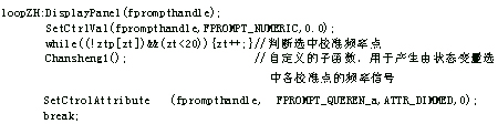 由于對每種儀器校準(zhǔn)時,應(yīng)在不同的頻率點上進行校準(zhǔn),而這些頻率點是按照檢定規(guī)程的要求設(shè)定,并存放在數(shù)據(jù)庫中,但實際工作中常常要對這些校準(zhǔn)點作適當(dāng)?shù)娜∩帷_@里實現(xiàn)的方法是:當(dāng)從數(shù)據(jù)庫中讀取校準(zhǔn)點及其允許誤差,并分別存入數(shù)組xiaozhuer11、mcha1中,然后再分別將這兩個數(shù)組中的數(shù)據(jù)分別送到測試面板上的“參考值”和“允許誤差”控件,最后由鼠標(biāo)點取相應(yīng)“狀態(tài)”(變量設(shè)為zt)選擇控件,然后操作并確認(rèn),具體的控制程序如下: